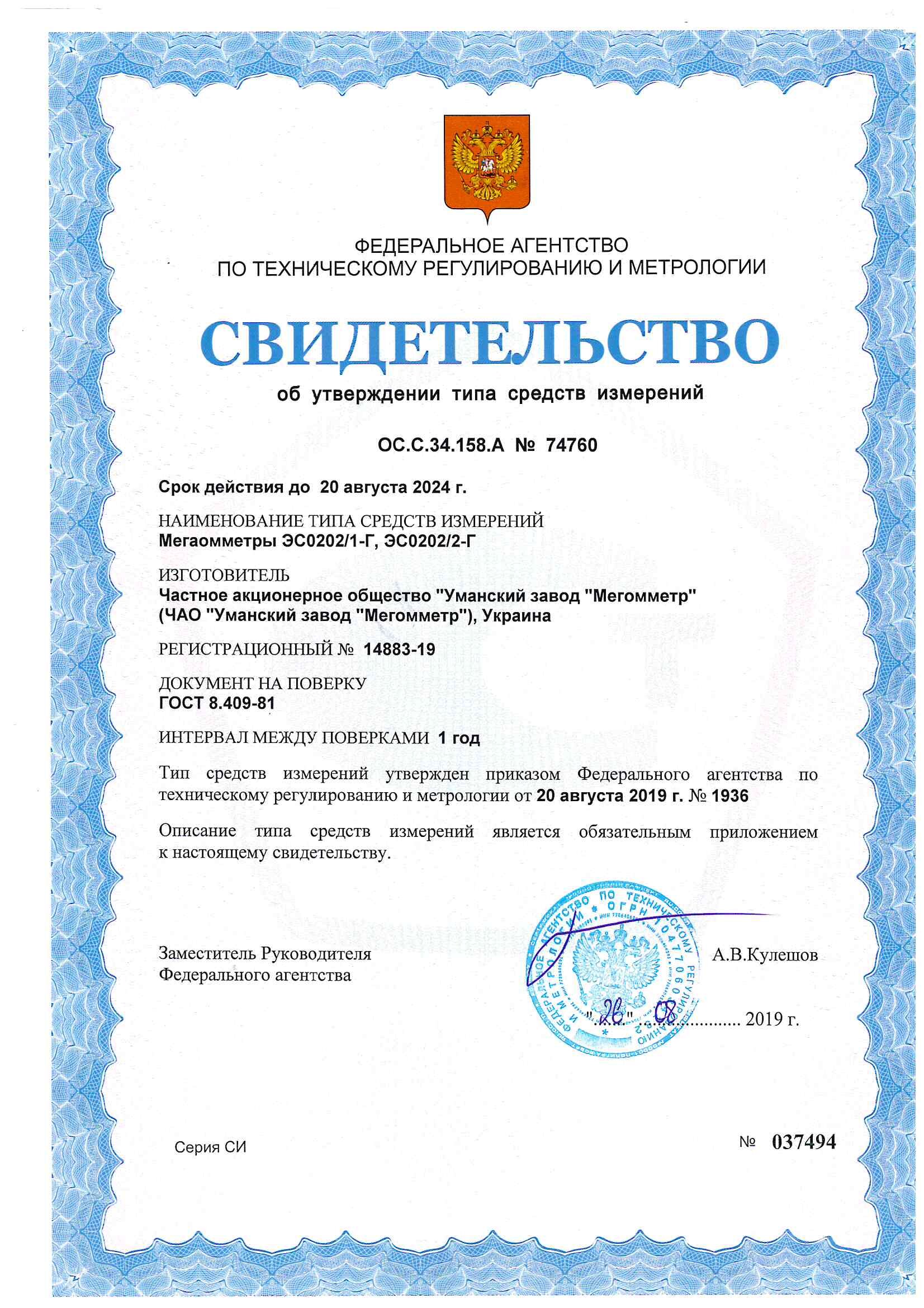 | Пределы допускаемых значений дополнительной погрешности, вызванной протеканием в измерительной цепи токов промышленной частоте | 50 мкА для ЭС0202/1Г и 500мкА для ЭС0202/2Г, не превышают пределов основной относительной погрешности | |