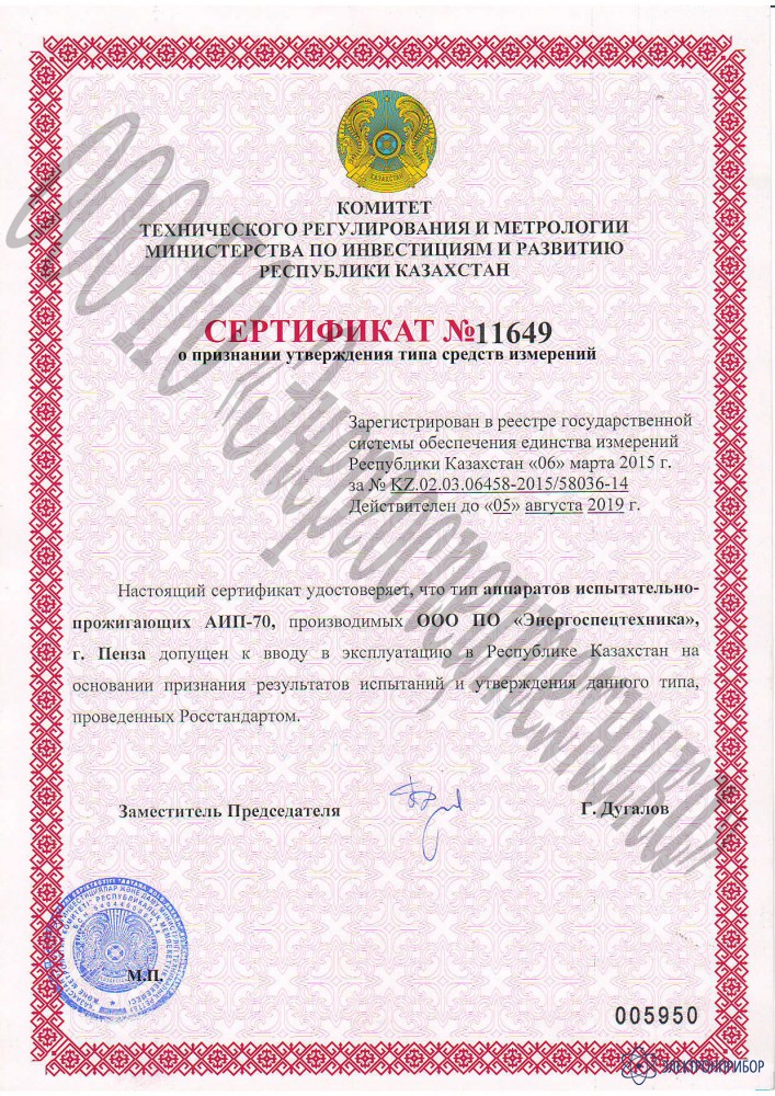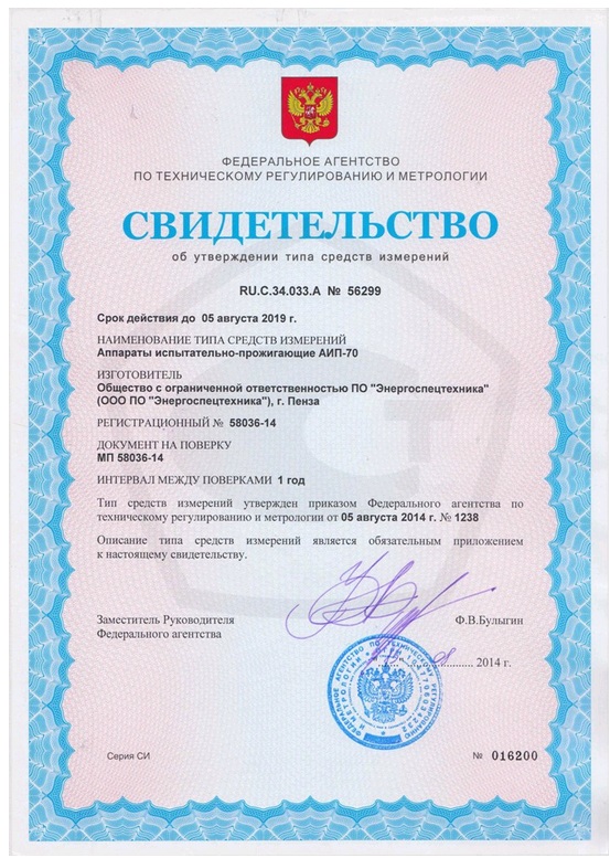 Технические характеристики аппарата испытательно-прожигающего АИП-70М: