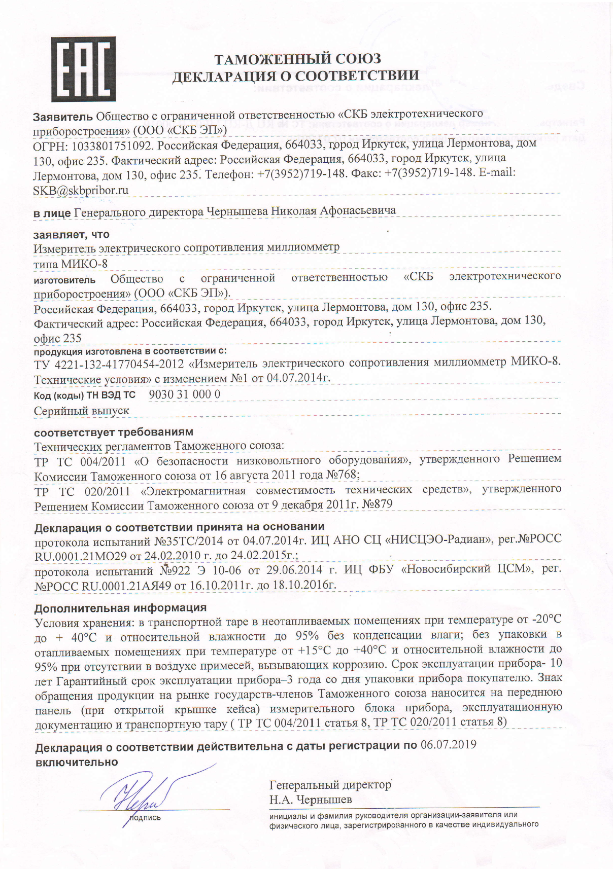 МИКО-8М/MA соответствует требованиям безопасности EN 61010-1 и требованиям электромагнитной совместимости, которые предъявляются к оборудованию класса А по EN 61326-1.