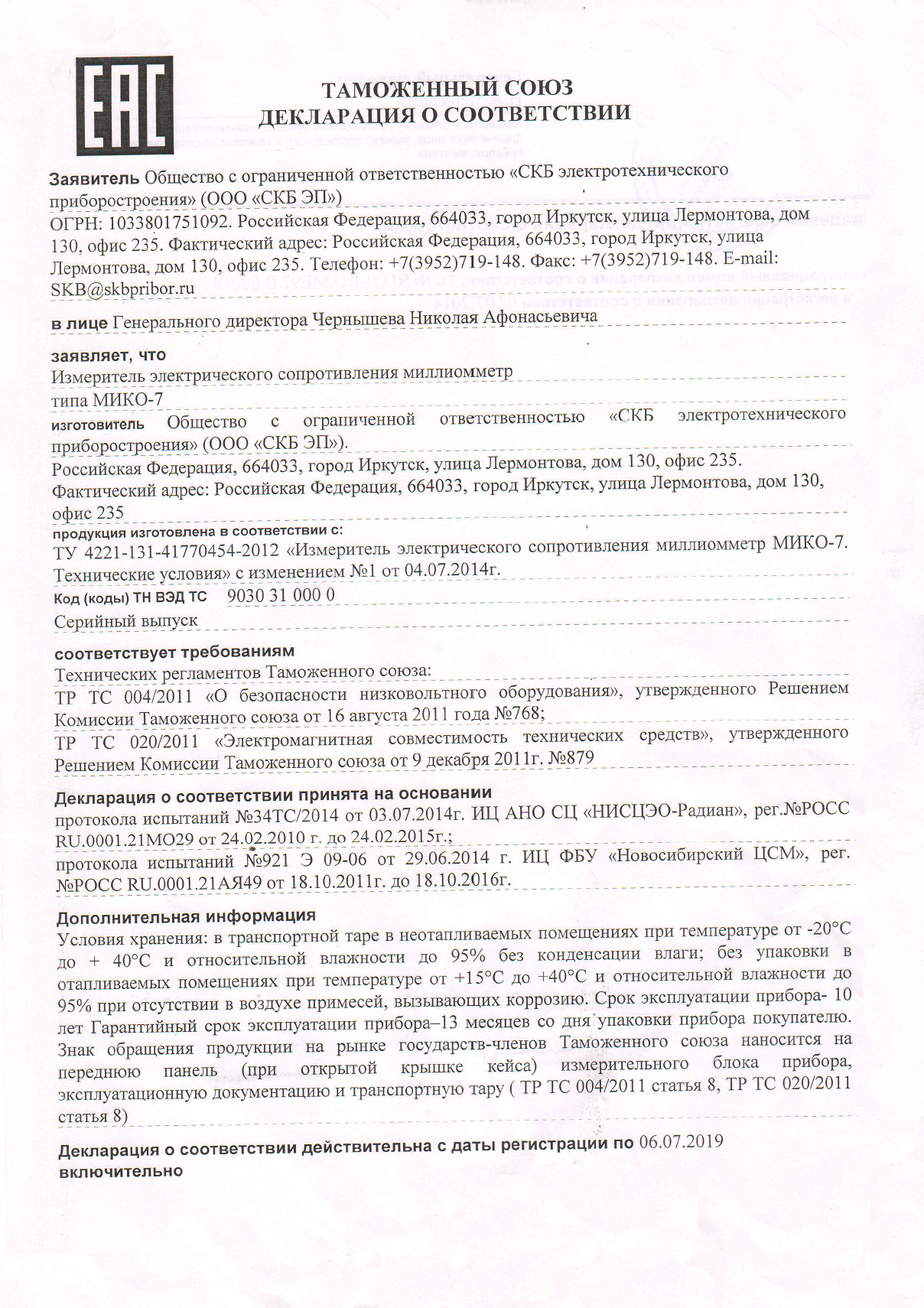 МИКО-7М/МА соответствует требованиям безопасности EN 61010-1 и требованиям электромагнитной совместимости, которые предъявляются к оборудованию класса А по EN 61326-1.