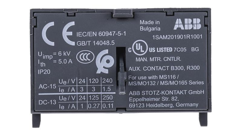 ABB Auxiliary Contact For Manual Motor Starter, 250V AC/DC Voltage Rating - 1SAM201901R1001_x000D_
