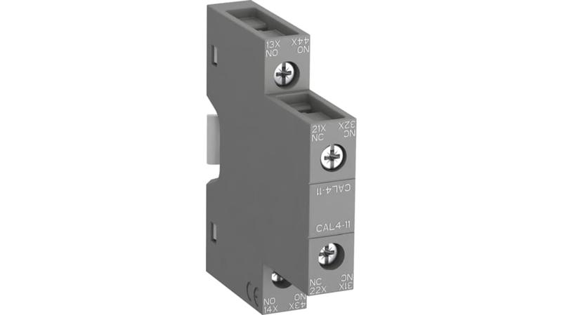 The ABB CLA4 auxiliary contact blocks are used for the operation of auxiliary circuits and control circuits for standard industrial environments. This auxiliary contact have 1 NO and 1 NC contact._x000D_
