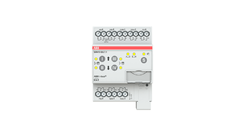 The ABB SAH/S series switch/shutter actuator is a modular installation device in proM design. The device is designed for installation in electrical distribution boards and small housings for rapid mounting on a 35-mm mounting rail. It possesses mutually independent switching relays._x000D_ Screw terminal_x000D_ Degree of protection IP20_x000D_ Contact position indication_x000D_ Manual operation