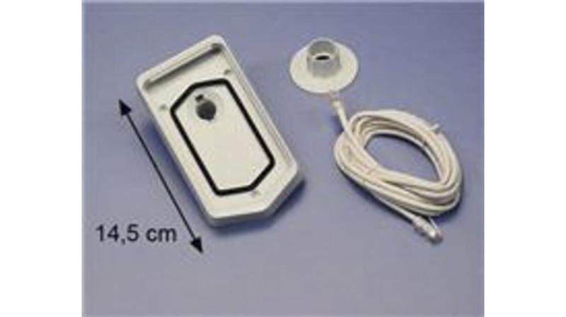 The keypad can be mounted onto a panel door using a two part kit. The kit includes a CDPI which is mounted onto the drive, then the DPMP-02 (pictured) is mounted onto the door and a CAT5 cable is used to connect between the two.