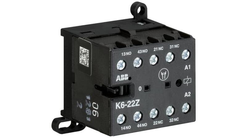 The ABB K6-22Z mini contactor relay is a compact 4 pole contactor relay with screw terminals. They are ideally suited for applications where reliability is a must and space is at a premium. Mini contactors relays are used in residential buildings, commercial buildings and industrial applications for switching of control signals up to 3 A / 400 V (AC-15). Further features are the silent coil, a switch position indication and the integrated possibility for rail or wall mounting._x000D_