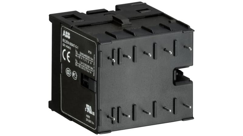 The ABB K6-31Z-P mini contactor relay is a compact 4 pole contactor relay with soldering pins. They are ideally suited for applications where reliability is a must and space is at a premium. Mini contactors relays are used in residential buildings, commercial buildings and industrial applications for switching of control signals up to 3 A / 400 V (AC-15). Further features are the silent coil, a switch position indication and the integrated possibility for rail mounting._x000D_