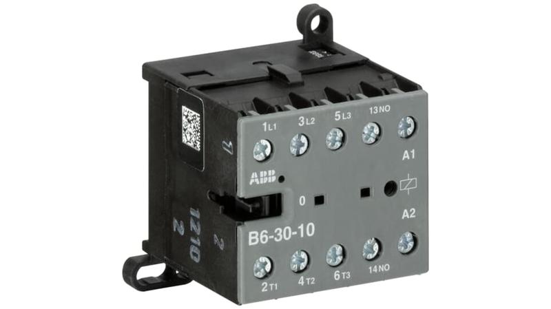 The ABB B6-30-10 mini contactor is a compact 3 pole contactor with 1 auxiliary contact and screw terminals. They are ideally suited for applications where reliability is a must and space is at a premium. Mini contactors are used in residential buildings, commercial buildings and industrial applications for the control of single or three-phase loads up to 4 kW (AC-3) and 20 A / 690 V (AC-1) or switching of control signals. Further features are the silent coil, a switch position indication and the integrated possibility for rail or wall mounting._x000D_