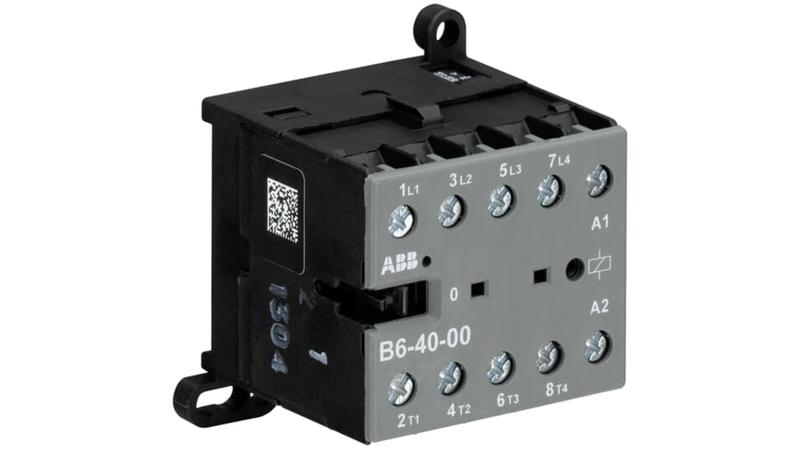 The ABB B6 is mini contactor have compact 3 pole with 1 auxiliary contact and screw terminal. This contactor are ideally suited for applications where reliability is a must and space is at a premium. Mini contactors are used in residential buildings, commercial buildings and industrial applications for the control of single or three-phase loads up to 4 kW._x000D_