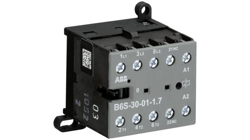 The ABB B6S-30-01 mini contactor is a compact 3 pole contactor with 1 auxiliary contact and screw terminals. Its ideally suited for applications where reliability is a must and space is at a premium. Mini contactors are used in residential buildings, commercial buildings and industrial applications for the control of single or three-phase loads up to 4 kW (AC-3) and 20 A / 690 V (AC-1) or switching of control signals._x000D_