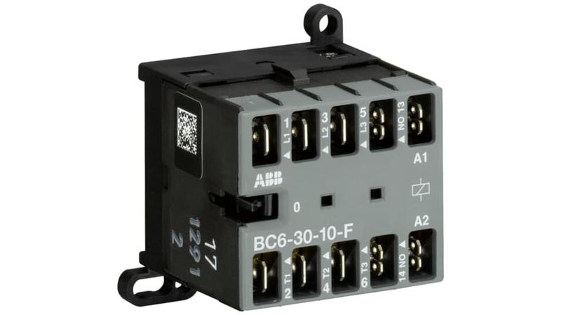 The ABB BC6-30-10-F mini contactor is a compact 3 pole contactor with 1 auxiliary contact and flat pin connector. Its ideally suited for applications where reliability is a must and space is at a premium. Mini contactors are used in residential buildings, commercial buildings and industrial applications for the control of single or three-phase loads up to 4 kW (AC-3) and 20 A / 690 V (AC-1) or switching of control signals._x000D_