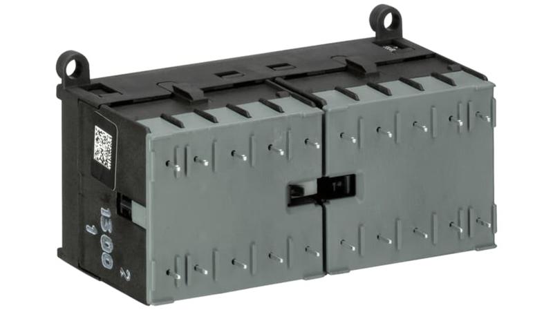 The ABB VB7A-30-01-P mini reversing contactor is a compact 3 pole contactor with 1 auxiliary contact, soldering pins and mechanical interlock and safety blocking. Its ideally suited for applications where reliability is a must and space is at a premium. Mini reversing contactors are used in residential buildings, commercial buildings and industrial applications for the control of three-phase motor loads up to 5.5 kW (AC-3)._x000D_