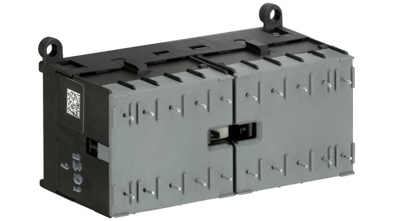 The ABB VBC7A-30-01-P mini reversing contactor is a compact 3 pole contactor with 1 auxiliary contact, soldering pins and mechanical interlock and safety blocking. Its ideally suited for applications where reliability is a must and space is at a premium. Mini reversing contactors are used in residential buildings, commercial buildings and industrial applications for the control of three-phase motor loads up to 5.5 kW (AC-3)._x000D_