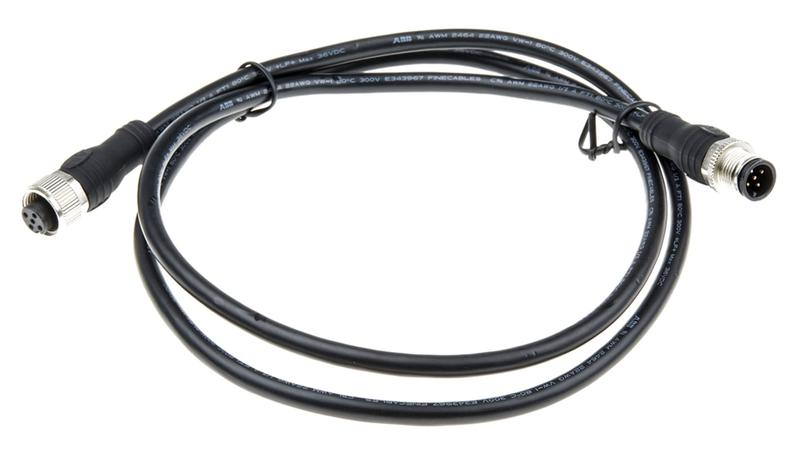 The ABB Jokab M12-C112 shielded cable with connector is PVC coated. The conductor size is 22AWG. It has a male x female connector. The cable is available in black oxide colour. A shield is connected to pin3 (0V) on the male connector._x000D_
