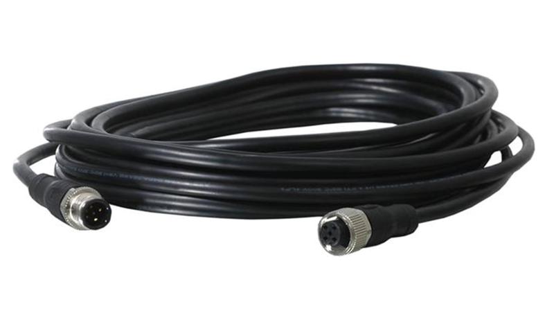 6 m cable 5 x 0,34 mm2 + shield with straight M12-5 female + male connectors. Shield connected to pin3 (0V) on male connector.