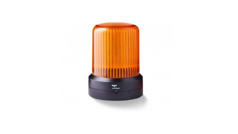The RDM series amber color LED multifunction beacon has a diameter of 110 mm and the all-rounder multi-functional module can display the functions steady light, strobe light, flashing light, rotating light as well as pulsating light. The functions are adjustable with a four-pole terminal. Seven different modes can be selected externally. With the DIP switch, four additional function groups can be selected, and a total of 28 different modes are available. It has high-lens version, is designed for maximum lateral signal effect. The clarity of the lens makes the individual LED dots stand out, which enhances the signal effect as well as the ribbing on the inside._x000D_