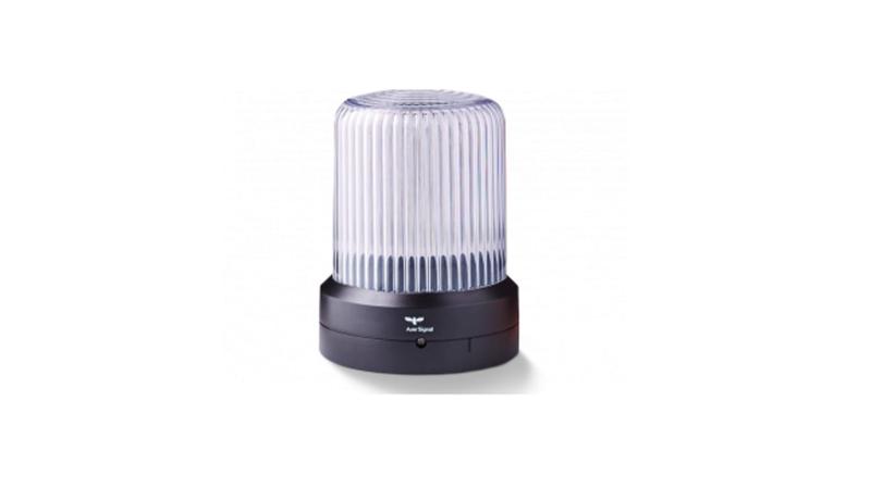 The RMM series LED multicolor beacon has a diameter of 110 mm and seven colors, red, yellow, green, blue, clear, magenta and turquoise that can be controlled externally. The clarity of the lens makes the individual LED dots stand out, which enhances the signal effect as well as the ribbing on the inside._x000D_