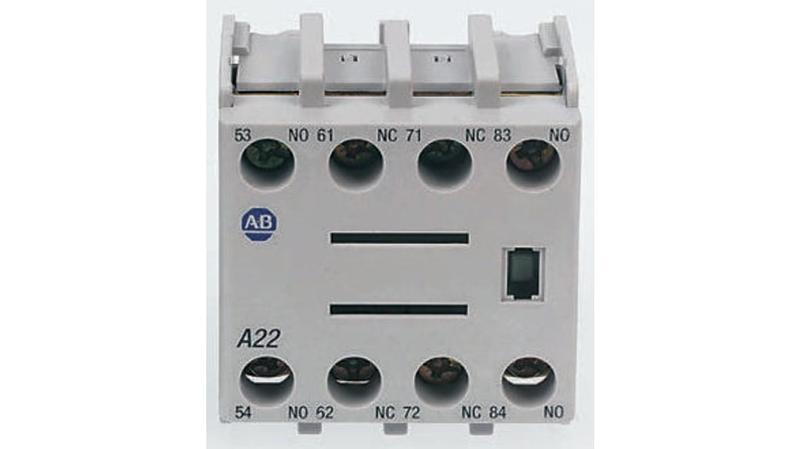 Use this Allen Bradley auxiliary contact from Rockwell Automation to efficiently transfer data from an electrical circuit to a logic controller for smooth automated processes. The device operates together with main contacts to signal switching states or logic. It also sequences controls to devices such as push buttons and relays. For safety, the contacts in the unit are positively guided, which ensures they can never all be closed at the same time. This unit has NO (normally open) contacts and is ideal for switching on other components, such as status indication lamps._x000D_