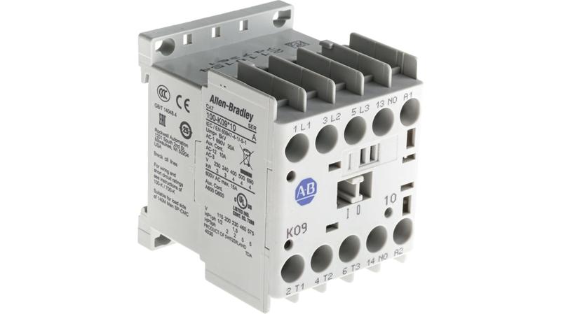 This contactor from Rockwell Automation's Allen Bradley range is used to control and protect alternating current (AC) motors. With a 230V AC coil and an electromagnet, this miniature device switches electric motors on and off and can be integrated with a relay for overload protection. As it can be controlled remotely, it's useful for motors that drive material-handling equipment. A width of 45mm and depth of 53mm makes it a good fit for applications where space is at a premium. The unit is made from materials that can be recycled, making it a sustainable choice._x000D_
