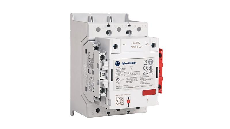 100S-E MCS-E Safety Contactor, 116A, AC3 duty, 100-250V 50/60Hz / 100-250V DC Electronic Coil, 1 N.O. 1 N.C. Standard & 0 N.O. 1 N.C. Lower Power Auxiliary Contacts