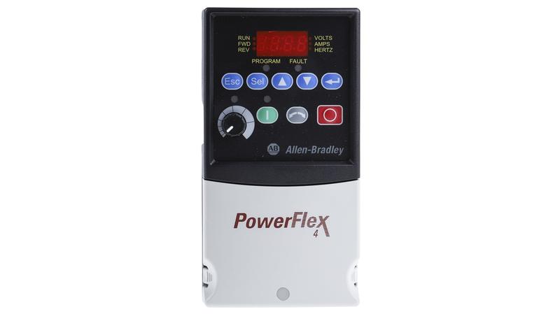 Allen Bradley PowerFlex 4 Inverter Drive_x000D_ For a compact inverter drive that provides powerful and precise motor speed control, look no further than the PowerFlex 4 AC drives by Allen Bradley. These PowerFlex devices have a space-saving design and can be DIN rail or panel mounted. It is the smallest member of the PowerFlex Variable Frequency Drive family and is designed for optimal flexibility and ease-of-use. It offers an economical alternative for speed control of applications such as pumps, conveyors, fans, machine tools, and material handling systems._x000D_ PowerFlex 4 devices are available in power ratings from 0.2 to 1.5kW (single phase) and 0.37 to 3.7 kW (3 phase) in voltage classes of 230 and 400 volts. They offer V/Hz control, slip compensation, RS-485 communication, and Auto Restart and Flying Start functions. Integral dynamic brake resistor is available on ratings 0.75kW and above._x000D_ Features and Benefits:_x000D_ • Simplified start-up due to keypad control keys and potentiometer which are active out of the box_x000D_ • Can be DIN rail or panel mounted for easy installation and application versatility_x000D_ • Efficient Zero Stacking allows the mounting of drives side by side with no air gap to save valuable panel space_x000D_ • Built-in keypad features a 4 digit display and 10 additional LED indicators for fast, easy status indication_x000D_ • Robust overload protection: 150% for 60 seconds, 200% for 3 seconds_x000D_ • Basic Program Group contains 10 most common application parameters to ensure quick and simple programming_x000D_ • Integral EMC filtering on single phase drives to meet EN55011 standard