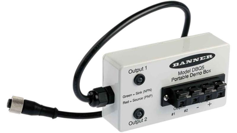 This sensor test box has been designed to test the functionality of inductive, magnetic field, capacitive and photoelectric sensors. The test box has clearly visible, illuminated LEDs indicating the switching status of the test box as well as an acoustic signal (if the box is connected to pin 4)._x000D_