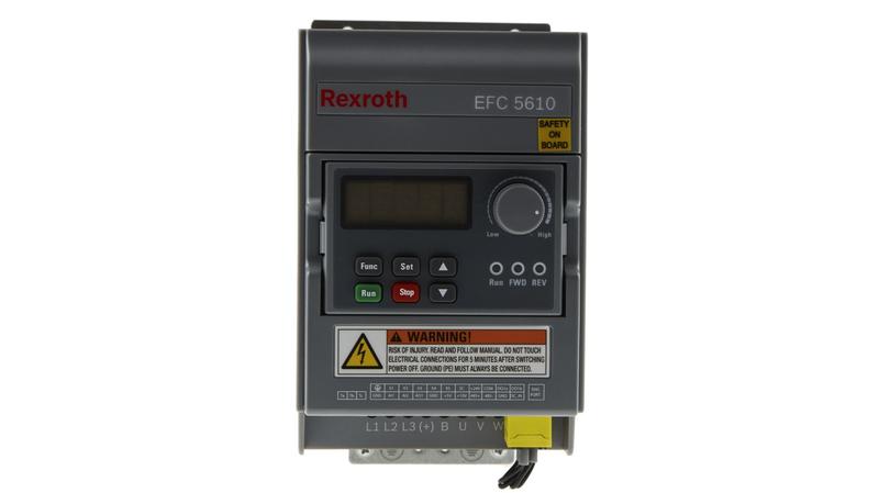 The Bosch Rexroth EFC 5610 series 1-phase inverter drive frequency converter has an electrical rating of 230VAC, 4.1A and 0.75kW at 400Hz. It offers both economical and easy to use solutions for a variety of applications where valuable energy has to be used responsibly._x000D_