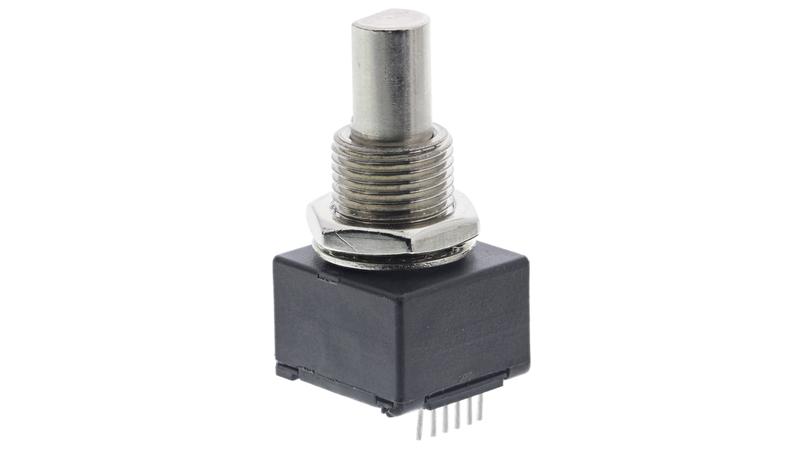 EM14 Series 14 mm Rotary Optical Encoder w/Switch_x000D_ EM14 series 14 mm rotary optical encoders with a compact package size, splashproof shaft seal, high rotational life cycle and HCMOS, CMOS and TTL compatability. These EM14 series rotary optical encoders are available with detent (stock number 789-9497) and standard push switch (stock numbers 691-7695, 691-7692, 691-7705, 691-7709, 691-7718, 827 4997 and 827-5007) and have different shaft styles (please refer to datasheet for details). Typical applications for these EM14 rotary optical encoders are human/machine interface (HMI) applications._x000D_ HCMOS, CMOS and TTL compatible_x000D_ High rotational cycle life_x000D_ Splashproof shaft seal_x000D_ Recommended for human/machine interface applications (HMI)