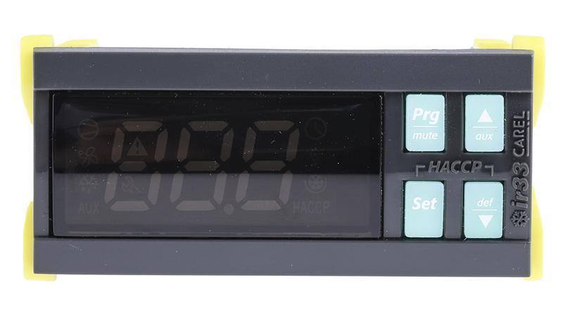 The CAREL IR33 series electronic temperature controller has a supply voltage rating ranging from 115VAC to 230VAC. This controller has a width of 76.2mm and a height of 34.2mm device. It has 4 relay output digital refrigeration. This single relay is perfect for controlling the minimum ON or OFF times of output to protect loads. The protection avoids control swings for more consistent and reliable functionality. The controller has a simple user interface with a clear LED screen and large control buttons._x000D_