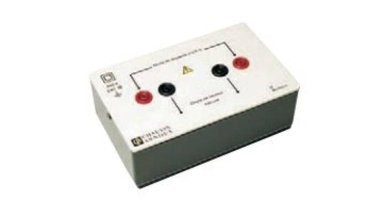A precision current shunt mounted in an insulated polycarbonate enclosure. Connections to the shunt are via 4mm colour-coded safety sockets._x000D_