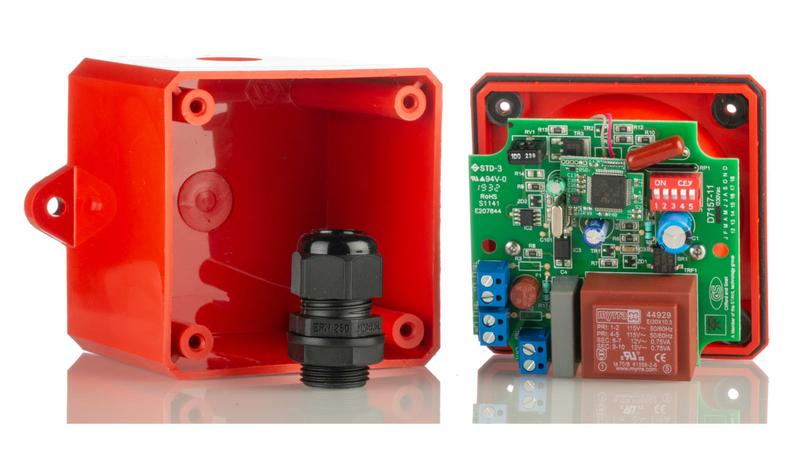 This electronic sounder from Clifford & Snell enhances the safety of your workplace thanks to its loud sound output of 100dB (decibels). This makes it easy to hear in large areas and noisy industrial environments. As it's a two-stage alarm, it provides an initial alert of a hazard and sounds an additional alarm when evacuation is required, making it suitable for complex safety setups. The red housing colour provides a clear visual indication of the sounder's function as an emergency-related signalling device._x000D_