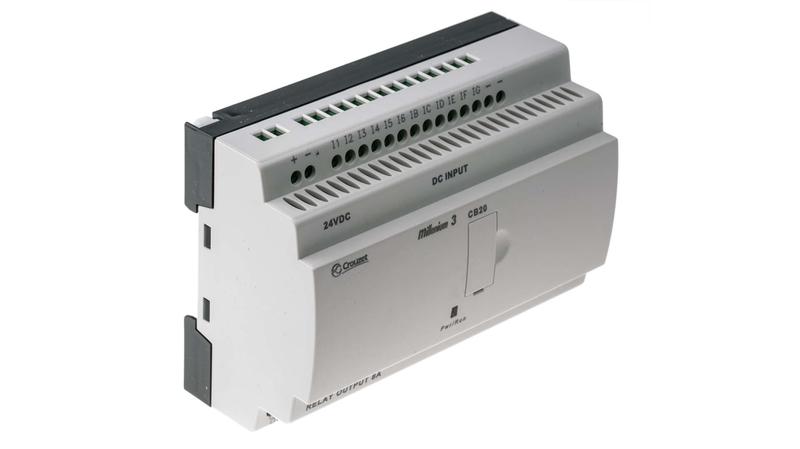 The Crouzet Millenium 3 series logic module is the latest generation of the Millenium compact version CB20 series with 12 digital (including 4 analogues) inputs and 8 relay outputs of 8A contact current rating. This DIN rail mounting type logic module has a screw termination method. It has a large memory for applications that require a larger space. The logic module has a supply voltage rating of 24VDC._x000D_