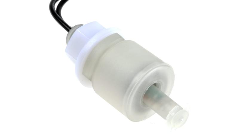 Use this vertical float switch from Sensata Cynergy3 for liquid level detection in small tanks. It consists of a float, a magnet and a reed switch that automatically turn a pump on or off based on the liquid level in the tank. It can be installed at the top of the tank to prevent overflow or at the bottom to stop the pump from running when there's no liquid. Thanks to its compact width of 30mm, it's a good choice for smaller applications such as vending machines and chemical dosing equipment._x000D_