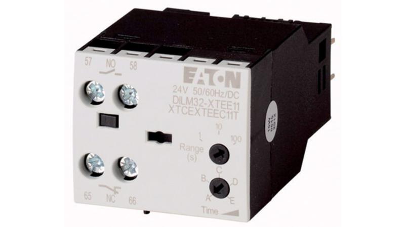 Top mounting electronic timers fitting on the X-Start range of contactors from DILM7 to DILM32 as well as DILA relays.,They cannot be combined with other top mounted modules. 1 NO + 1 NC contacts included with each timer._x000D_