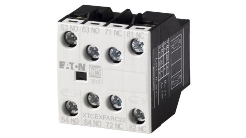 This range of auxiliary contacts from Eaton is designed to expand the DILA contactor relay series up to 8 auxiliary contacts with front-mountable auxiliary switches. The relays are ideally suited for use as coupling or interface contactors, especially if used to control large contactors directly from a PLC._x000D_