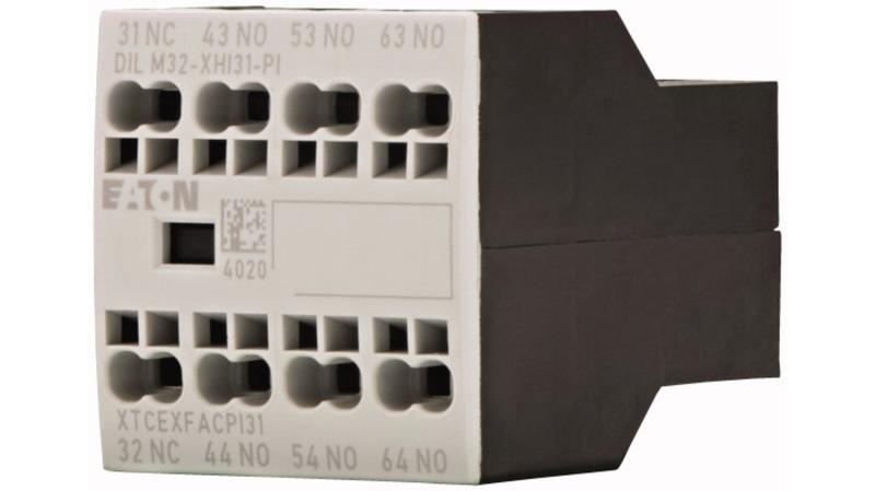 The Eaton Auxiliary contact module with interlocked opposing contacts is rated for operating current of 16 A. The device is available with Push-in terminals connection. It has an operating temperature range of -25°C to 60°C. It has a Spring clamp type of electrical connection and also offers Finger-safe and back-of-hand proof terminals connection._x000D_