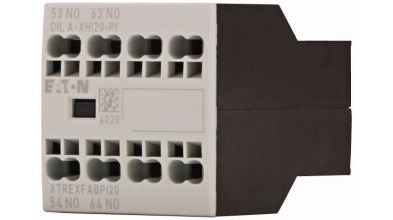 The Eaton Auxiliary contact module with interlocked opposing contacts is rated for operating current of 16 A. The device is available with Push-in terminals connection. It has an operating temperature range of -25°C to 60°C. It has a Spring clamp type of electrical connection and also offers Finger-safe and back-of-hand proof terminals connection._x000D_