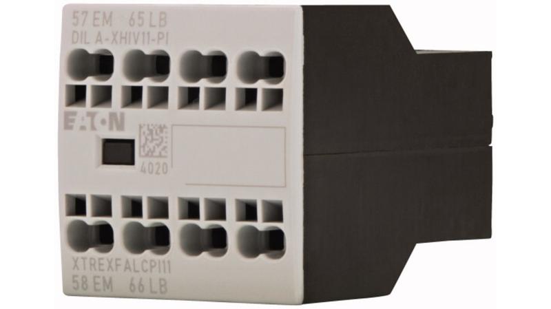 The Eaton Auxiliary contact module with interlocked opposing contacts is rated for operating current of 16 A. The device is available with Push-in terminals connection. It has an operating temperature range of -25°C to 60°C. It has a Spring clamp type of electrical connection and also offers Finger-safe and back-of-hand proof terminals connection._x000D_