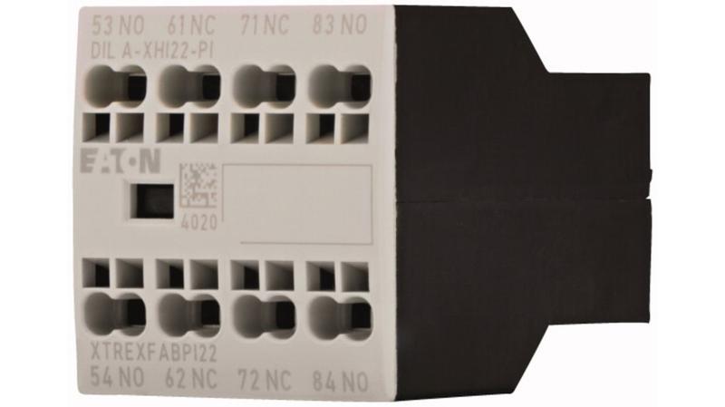 The Eaton Auxiliary contact module with interlocked opposing contacts is rated for operating current of 16 A. The device is available with Push-in terminals connection. It has an operating temperature range of -25°C to 60°C. It has a Spring clamp type of electrical connection and also offers Finger-safe and back-of-hand proof terminals connection._x000D_