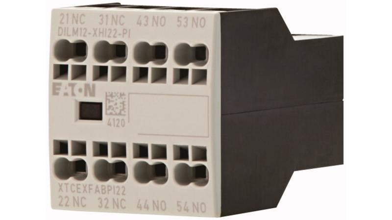The Eaton Auxiliary contact module with interlocked opposing contacts is rated for operating current of 16 A. The device is available with Push-in terminals connection. It has an operating temperature range of -25°C to 60°C. It has a Spring clamp type of electrical connection and also offers Finger-safe and back-of-hand proof terminals connection._x000D_