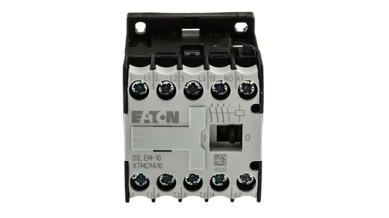 Safely switch electrical circuits on and off with this 3-pole, 3NO contactor from Eaton. As it has a contact voltage rating of 690V AC and a contact current rating of 9A, it's built to handle high-power electric motors and resistive loads. You can configure it for use in the starting, stopping and reversing of motors, so it's suitable for automating lifts and conveyors or controlling air conditioning systems and pumps as well as lighting circuits._x000D_