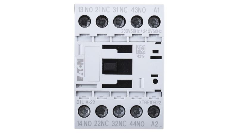Eaton Contactor Overload Relays - DILA Series Industrial Control Relays_x000D_ Eaton's DILA series of overload relays form part of the xStart range and come in three basic versions with the following contact types, 4NO, 3NO/1NC, 2NO/2NC. They come with 2-pole and 4-pole top-mounting auxiliary contacts and the modular design mean they can be expanded to up to eight contacts in total. These overload relays are ideally suited for use as coupling or interface contactors, especially if used to control large contactors directly from a PLC._x000D_ The DILA auxiliary contactors are the ideal companion for the DILM motor contactors, their auxiliary contacts are specifically designed for the contactor relays ensuring safe detection. If the associated system components are used, they can easily handle a wide range of electrical automation and control tasks._x000D_ All of Eaton’s DILA series overloads are reliable and high in quality offering motor control and circuit protection within a multitude of environments. Eaton offer a wide range of reliable contactor overload relays to protect machinery from overheating, keeping your business and its operations accessible._x000D_ Eaton's devices are compliant with the ErP directive meaning it's energy efficient options provide the potential for very significant savings in operational costs and will help you use energy in a more reliable, efficient, safe and sustainable way._x000D_ Features and Benefits_x000D_ • 4A Current Rating_x000D_ • Up to 415 V ac Contact Voltage Rating_x000D_ • 4NO, 3NO/1NC and 2NO/2NC contact versions available_x000D_ • Can be expanded to up to eight contacts_x000D_ • All contacts are interlocked and opposing_x000D_ • Screw terminal_x000D_ Note: DILA -22 Contactor relay cannot be used with 4-pole auxiliary contact module._x000D_ Note_x000D_ Eaton formerly known as Moeller