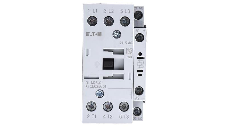EATON 3 phase DILM Series Contactors_x000D_ High operational reliability with a long lifespan, the DILM series of contactors from the xStart system are ideal for AC-4 jogging, ensuring continual operation for busy environments. This generation of modular components benefit from technology advances for motor switching and control. A series of extremely durable and interference immune, DILM contactors also handle all demands when used in conjunction with PLCs. The AC and DC components in this series from EATON offer 3 pole contactors up to 170 A AC-3 at 400 V and 4 pole contactors up to 200 A AC-1._x000D_ Features and Benefits:_x000D_ • Compatible with the SmartWire-DT® communication system_x000D_ • Identical sizes for AC and DC operated contactors_x000D_ • Minimised heat dissipation - energy saving_x000D_ • Direct Fieldbus connection_x000D_ • Integrated suppressor circuit for DC models_x000D_ Typical Applications_x000D_ This range of contactors can be used across a multitude of applications, users will commonly find these contactors being used within industrial settings such as factory automation, railway transportation, electrical systems, electric motor, lighting, and mechanical engineering._x000D_ How contactors operate?_x000D_ Contactors, unlike relays, are specifically designed to connect to high current load devices. Used in larger-scale applications, a contactor is a switch that can be controlled remotely, specifically designed to switch a large amount of electrical power through its contacts. If a device has the ability to switch more than 15 amperes it is called a contactor. These devices also feature high coil voltages which is rare within relays._x000D_ Electronic drive removes the need for coupling relays_x000D_ Note_x000D_ Eaton formerly known as Moeller