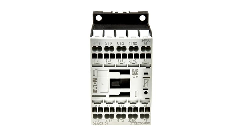 The Eaton DILMC series is a 3-pole, 1NC auxiliary contact DC operating contactor. It has been designed for heavy load applications. This device has a coil voltage rating of 24VDC and a contact current rating of 12A. This device has many advanced safety features that make it an ideal relay for many industrial applications._x000D_