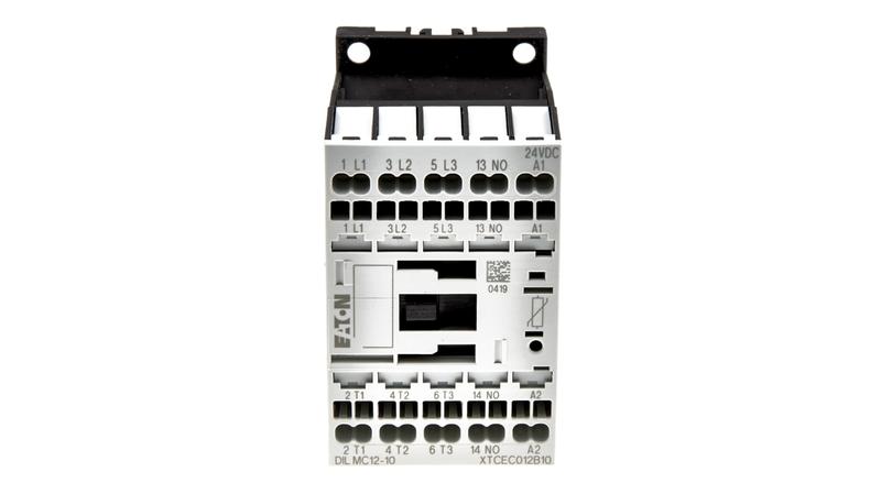 The Eaton DILMC series is a 3-pole, 1NC auxiliary contact DC operating contactor. It has been designed for heavy load applications. This device has a coil voltage rating of 24VDC and a contact current rating of 12A. This device has many advanced safety features that make it an ideal relay for many industrial applications._x000D_