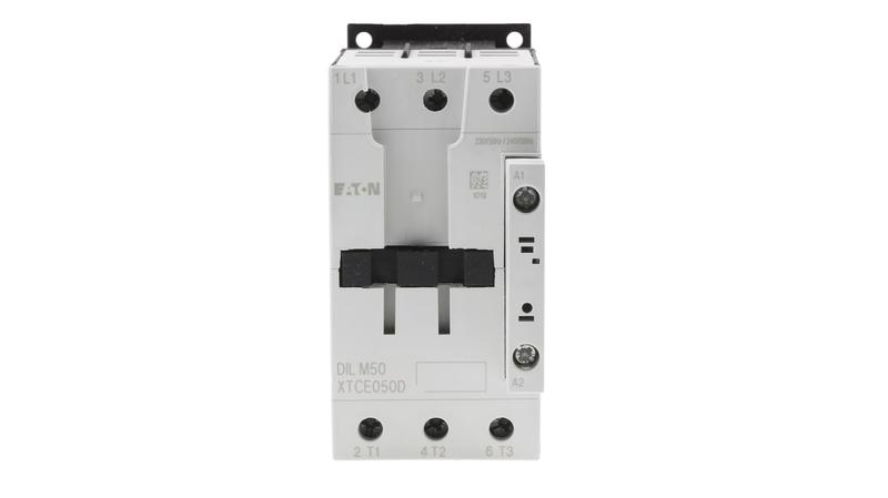 Switch your electric circuits on and off safely with this contactor from Eaton. It has three normally open contacts that close when the integrated coil receives power, which energises the circuit. Thanks to a contact current rating of 50A, you can safely use this component in your heavy-duty equipment. The integrated fuse helps protect the contactor from short circuits and current overload. As it's finger-proof and back-of-hand-proof, you can handle this unit without the risk of electric shocks._x000D_