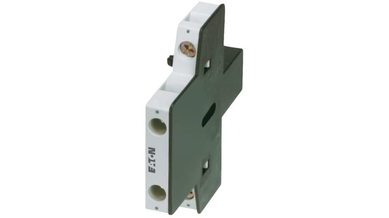 The Eaton Auxiliary contact module, with interlocked opposing contacts. It works with an voltage rating of 500 volts and current rating of 10 ampere._x000D_