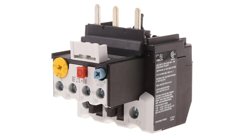 Protect your single-phase to 3-phase motors with this contactor overload relay from Eaton. It monitors the operating current of the motor and switches the contactor off in the event of an electrical overload or overcurrent. This process safeguards motors against overheating and protects them from damage caused by phase losses. Ambient temperature compensation ensures reliability and accuracy. Use this precision short-circuit-protection device for the motors in your commercial and industrial processes._x000D_