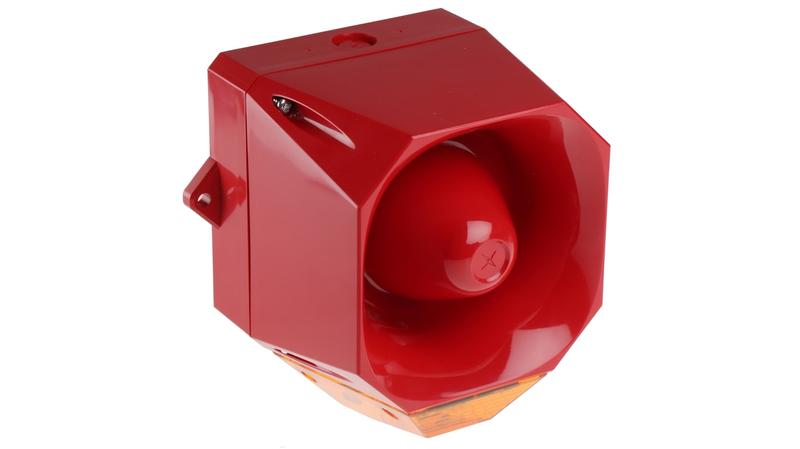 Need an alarm that's loud and clear? This sounder beacon from Eaton Fulleon's Asserta Midi series has a volume of 110dB (decibels) at a 1m distance, which is about as loud as humans can safely hear. An LED bulb behind an amber lens flashes to provide an accompanying visual signal. Efficient use of light helps to save energy while producing a brightly flashing alert. The unit's housing is made from durable acrylonitrile butadiene styrene (ABS) and is coloured red for immediate identification. Use this device as a safety alarm in public and industrial environments._x000D_