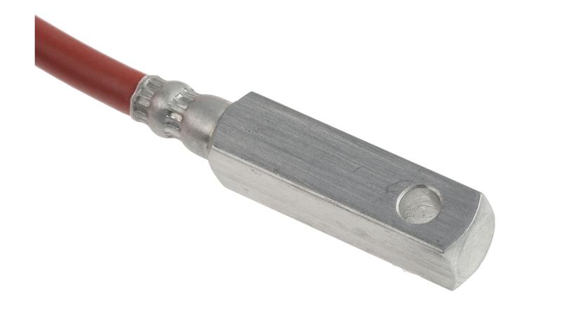 Type K10 — High-Temperature Cable Sensor, PT100_x000D_ Resistance thermometer for surface measurements_x000D_ Temperature measurement and monitoring on diverse application sites_x000D_ Temperature range: -50 °C → +200 °C or +400 °C_x000D_ Anti-kink spring_x000D_ Aluminium housing (8 x 8 x 40 mm) with fixing centre and connection lead_x000D_ Three-conductor circuit_x000D_ Accuracy class B_x000D_ 2.5 m connection lead_x000D_ 400 °C version with cable sheathing reinforced with fibre glass_x000D_ Standards_x000D_ Base values and limit deviations according to DIN EN 60751