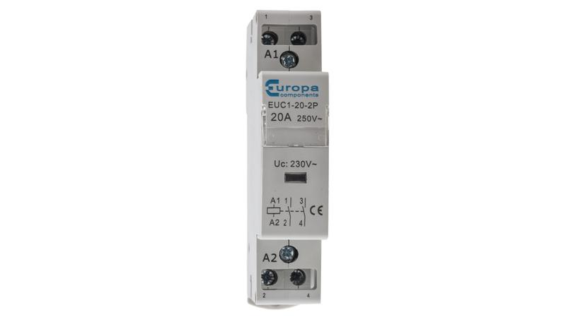 Europacomponents EUC1 Series Modular Contactor_x000D_ 2 Pole_x000D_ Operating temperature: -5°C to 40°C_x000D_ 35mm DIN Rail mounting_x000D_ Maximum cable capacity main terminals: 10 mm²_x000D_ Maximum cable capacity coil terminals: 2.5 mm²_x000D_ Europa Components EUC1 series 2 pole modular contactors. These units are DIN Rail mounted and designed for installation in consumer units and three phase distribution boards. Ideal for heating lighting and building service type applications._x000D_ Note_x000D_ Modular contactors should be separated from other components using blanking modules to allow for heat dissipation._x000D_ Europacomponents Circuit Protection Devices